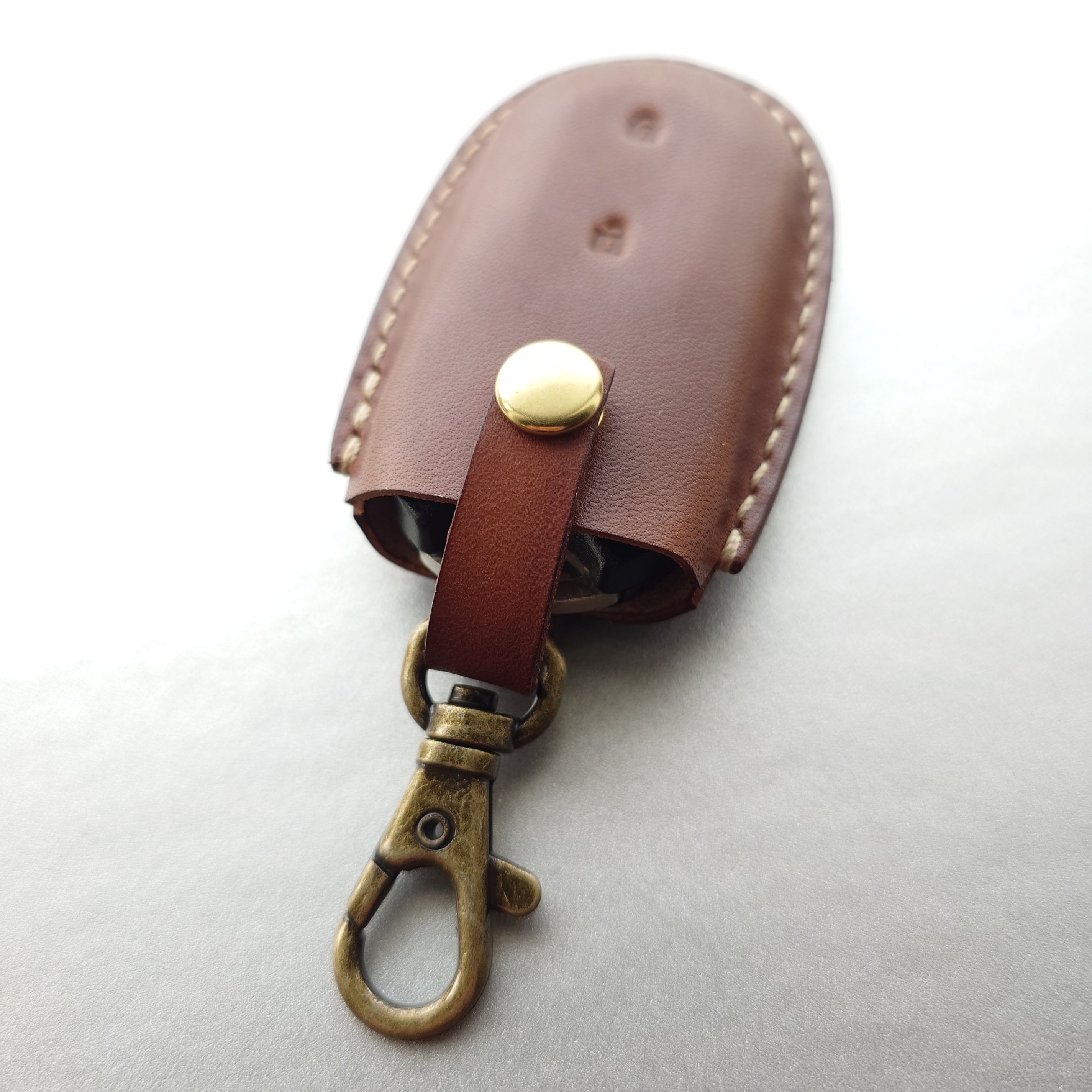 サドルレザー(ヌメ革)を使用して製作したYKKの玄関用ドアのスマートキーカバーです。実際のスマートキーを使用して製作しているためピッタリとフィットしています。ジャストサイズなので使いやすく、「このスマートキーためだけに作られたスマートキーケース」という特別感があります。