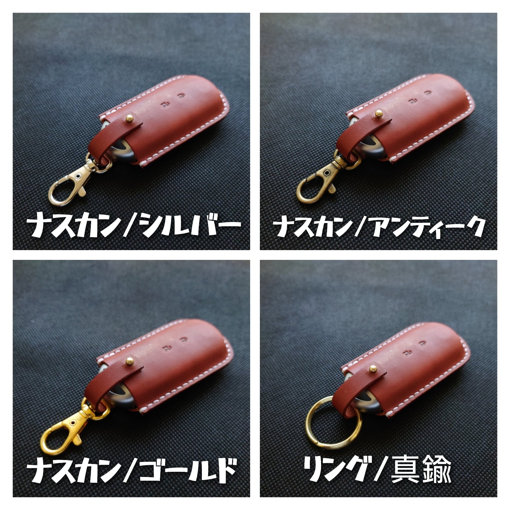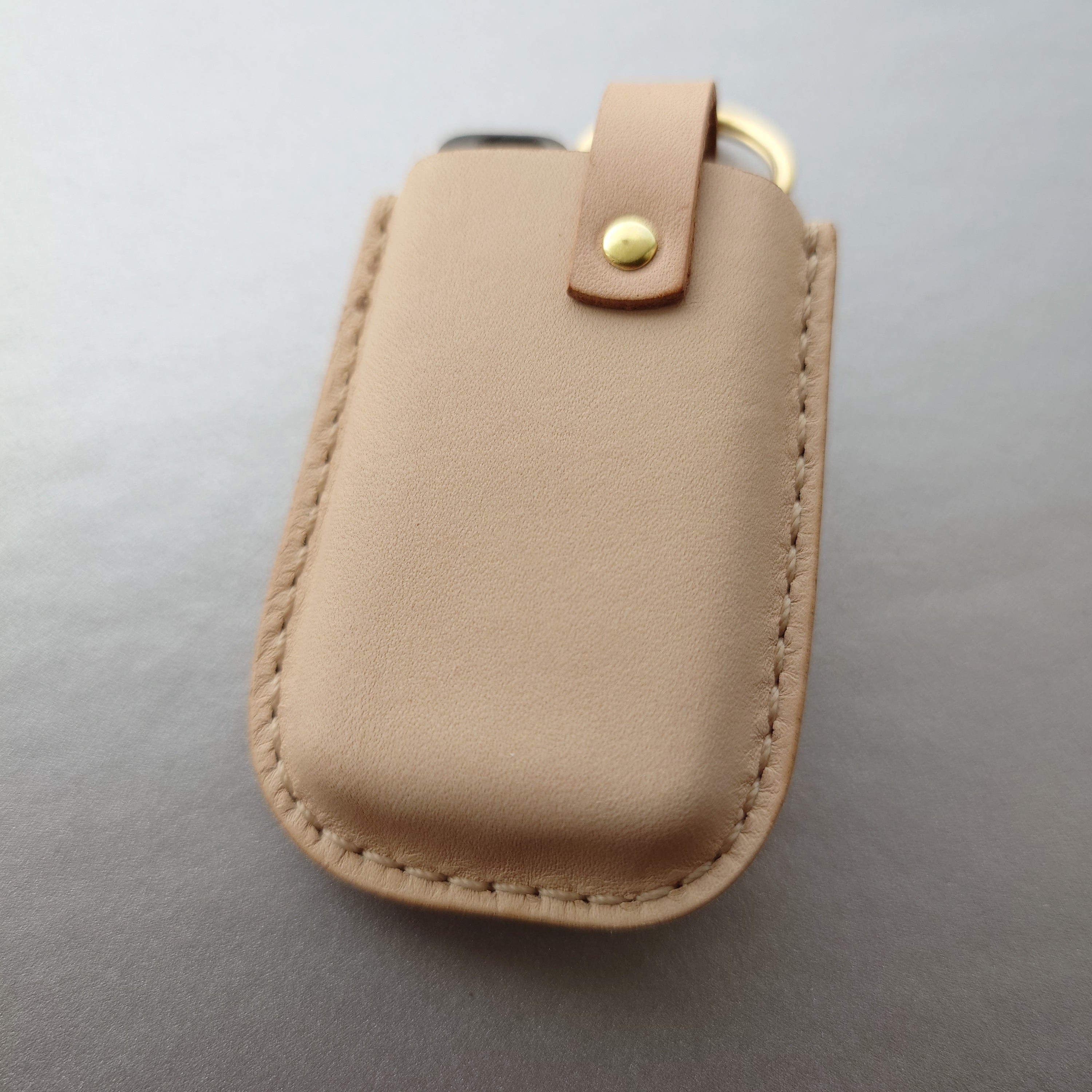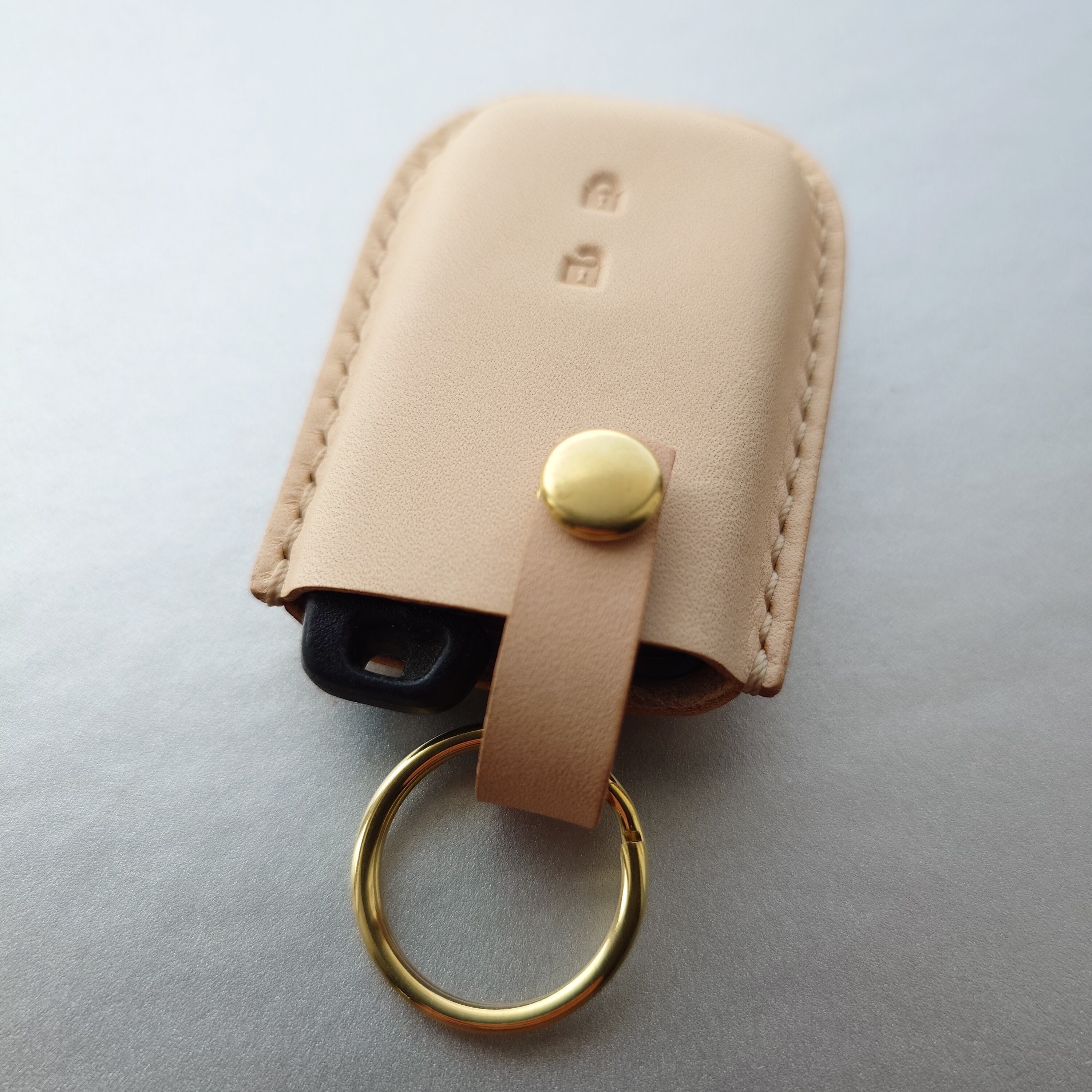 サドルレザー(ヌメ革)を使用して製作したトヨタのスマートキーカバーです。ホックやボタンを使用していませんが、通常の使用で抜け落ちることはありません。実際のスマートキーを使用して製作しているためピッタリとフィットしています。