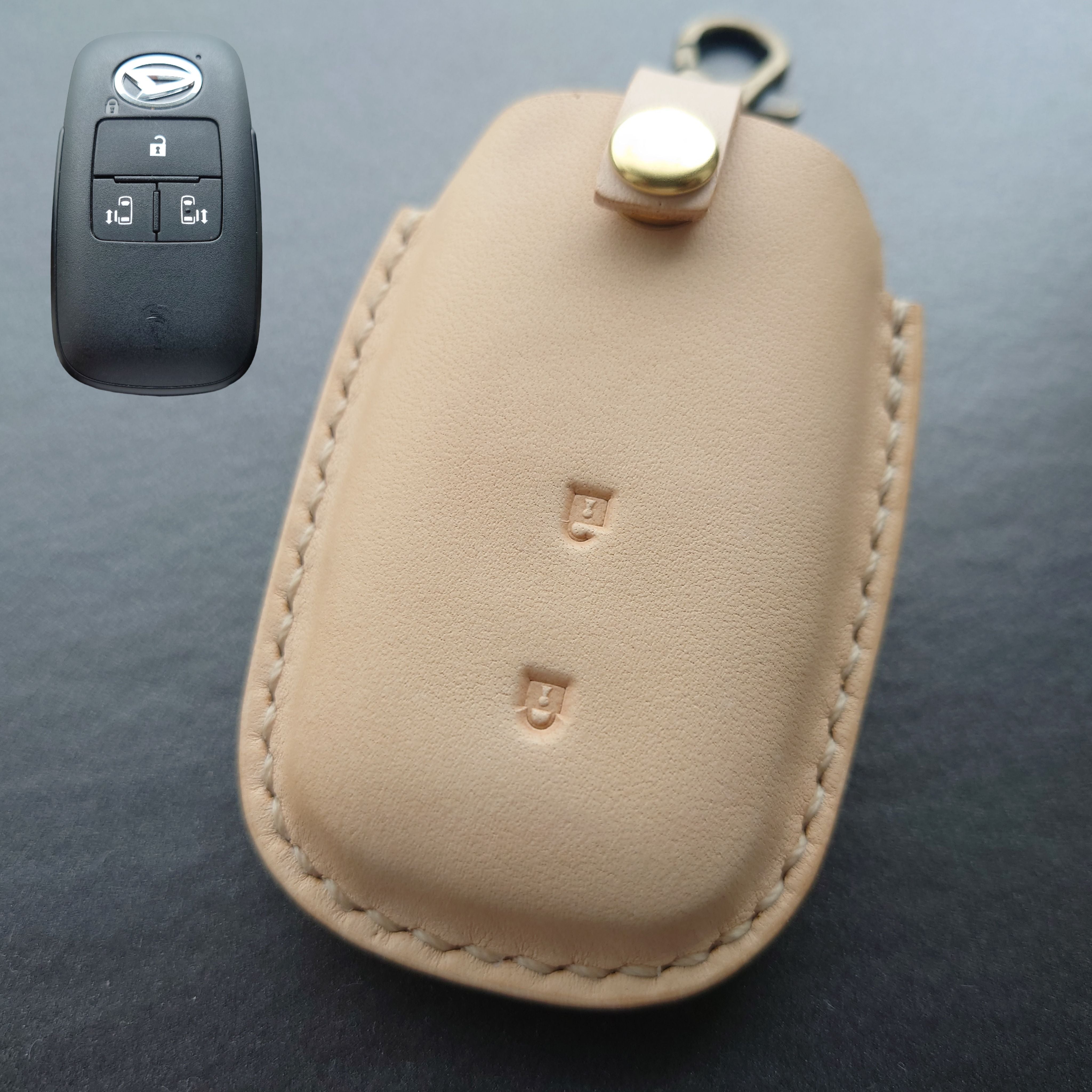 厳選したサドルレザー(ヌメ革)を使用して製作したトヨタ/ダイハツのスマートキーカバーです。実際のスマートキーを使用して製作しているためピッタリとフィットしています。