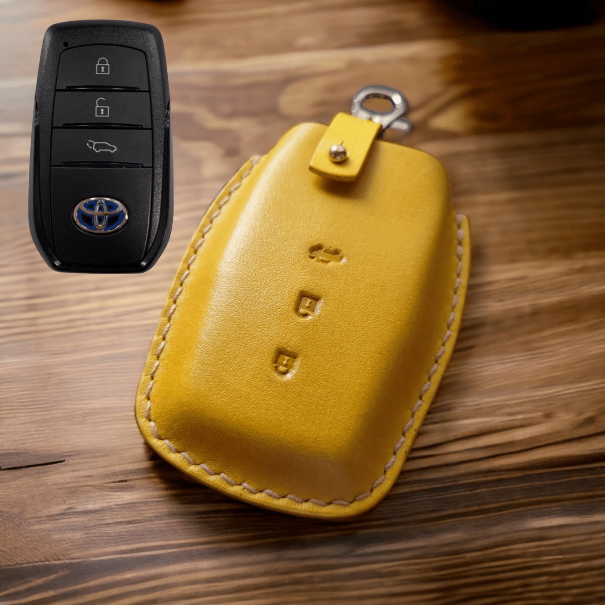 トヨタ/ヤリス/ハリアー/スマートキーケース/スマートキーカバー/本革/レザー/TOYOTA/プレゼント/ギフト 黄色