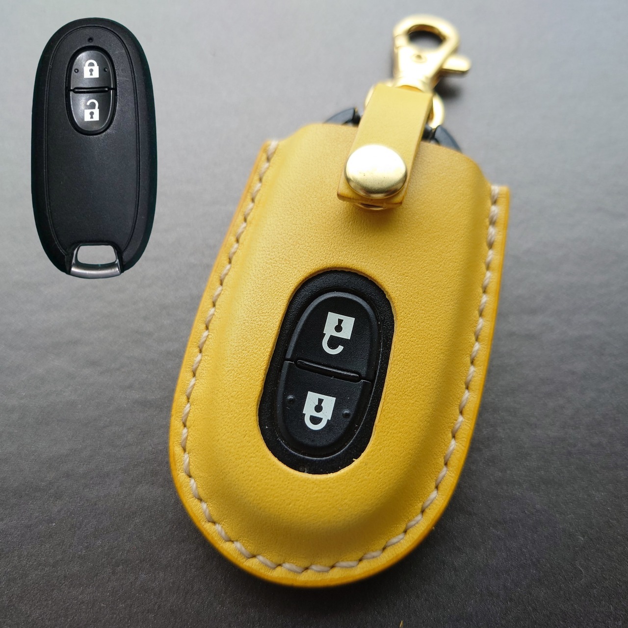 厳選したサドルレザー(ヌメ革)を使用して製作したスズキの軽自動車用のスマートキーカバーです。ホックやボタンを使用していませんが、通常の使用で抜け落ちることはありません。実際のスマートキーを使用して製作しているためピッタリとフィットしています。