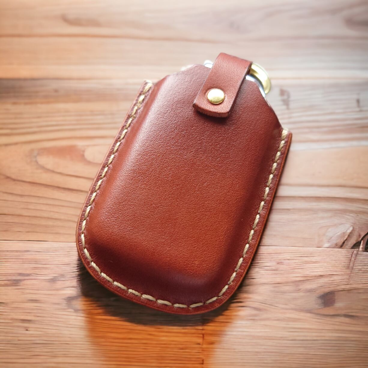 サドルレザー(ヌメ革)を使用して製作したホンダのスマートキーカバーです。実際のスマートキーを使用して製作しているためピッタリとフィットしています。